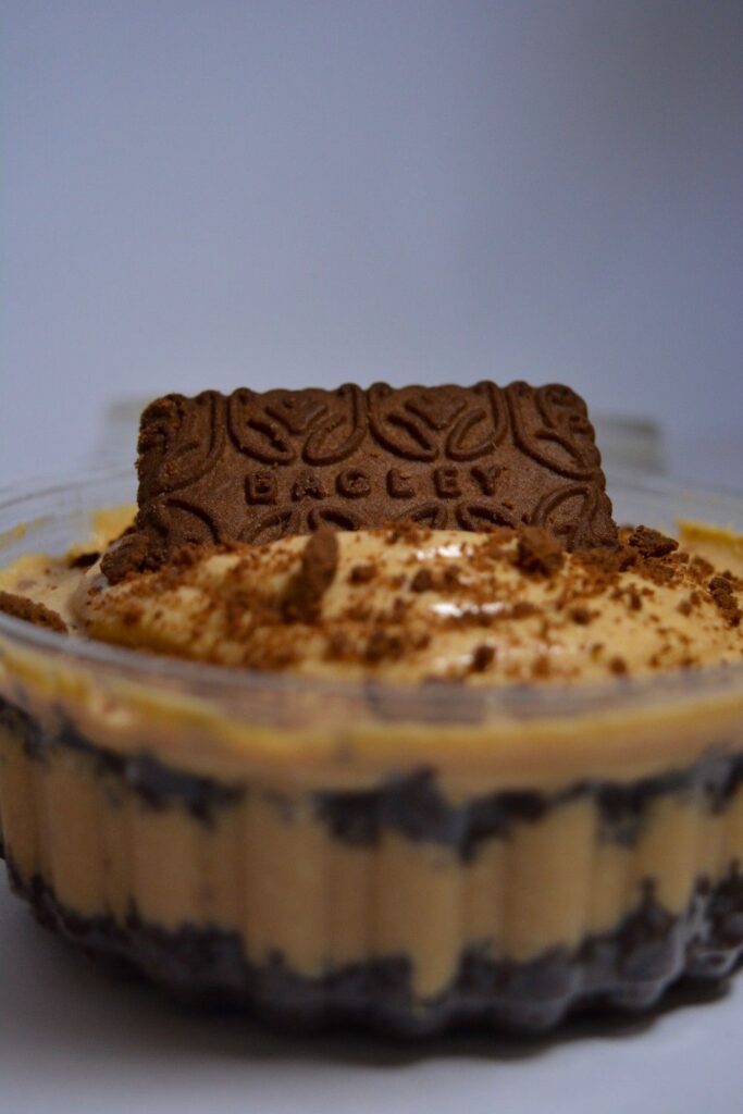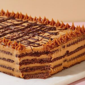 Capas húmedas de galletas de chocolate y una crema suave de dulce de leche y queso se combinan en una textura irresistible. Un clásico argentino donde lo simple se vuelve exquisito, coronado con virutas de cacao y un toque dulce que conquista a todos.